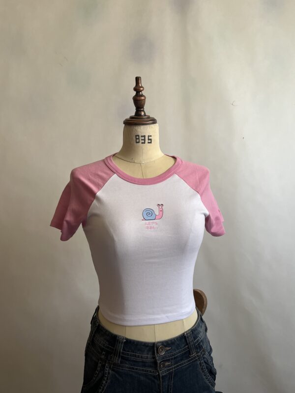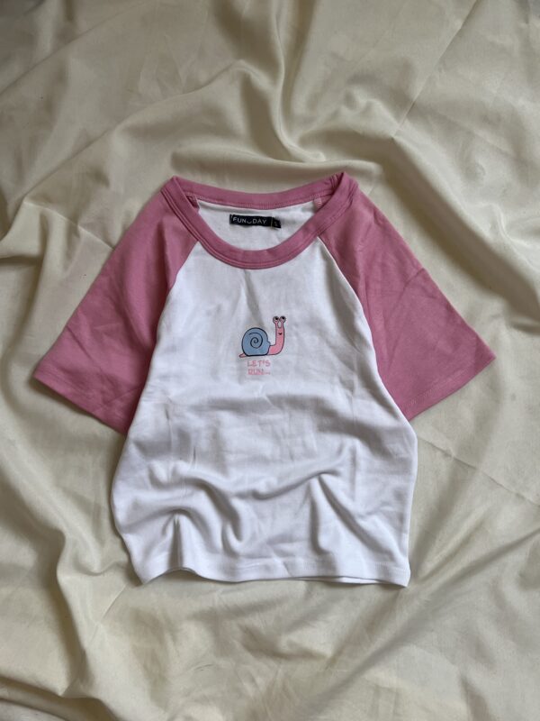 کراپ رگلان سفید و صورتی با طرح حلزون