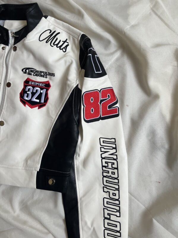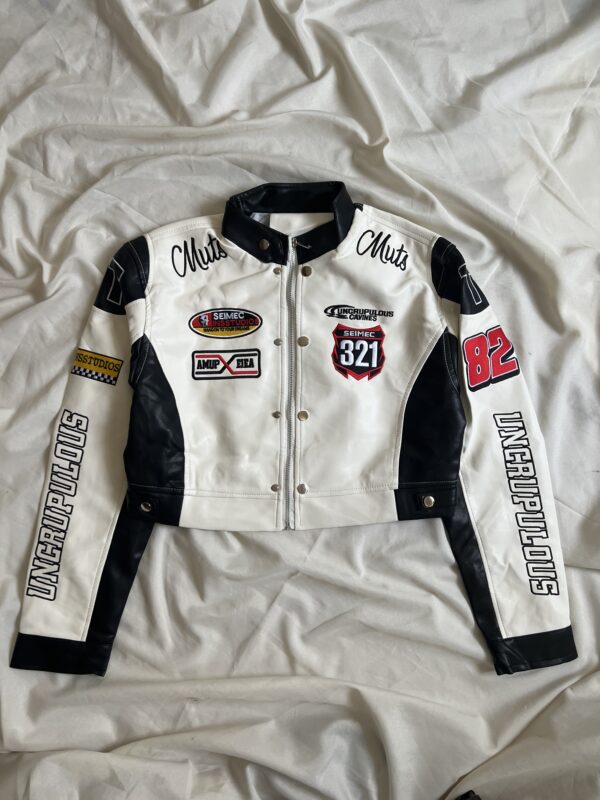 ریسینگ جکت چرمی زنانه – مشکی سفید