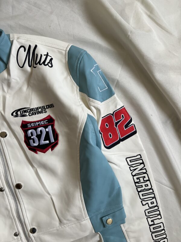 ریسینگ جکت چرمی زنانه – آبی سفید
